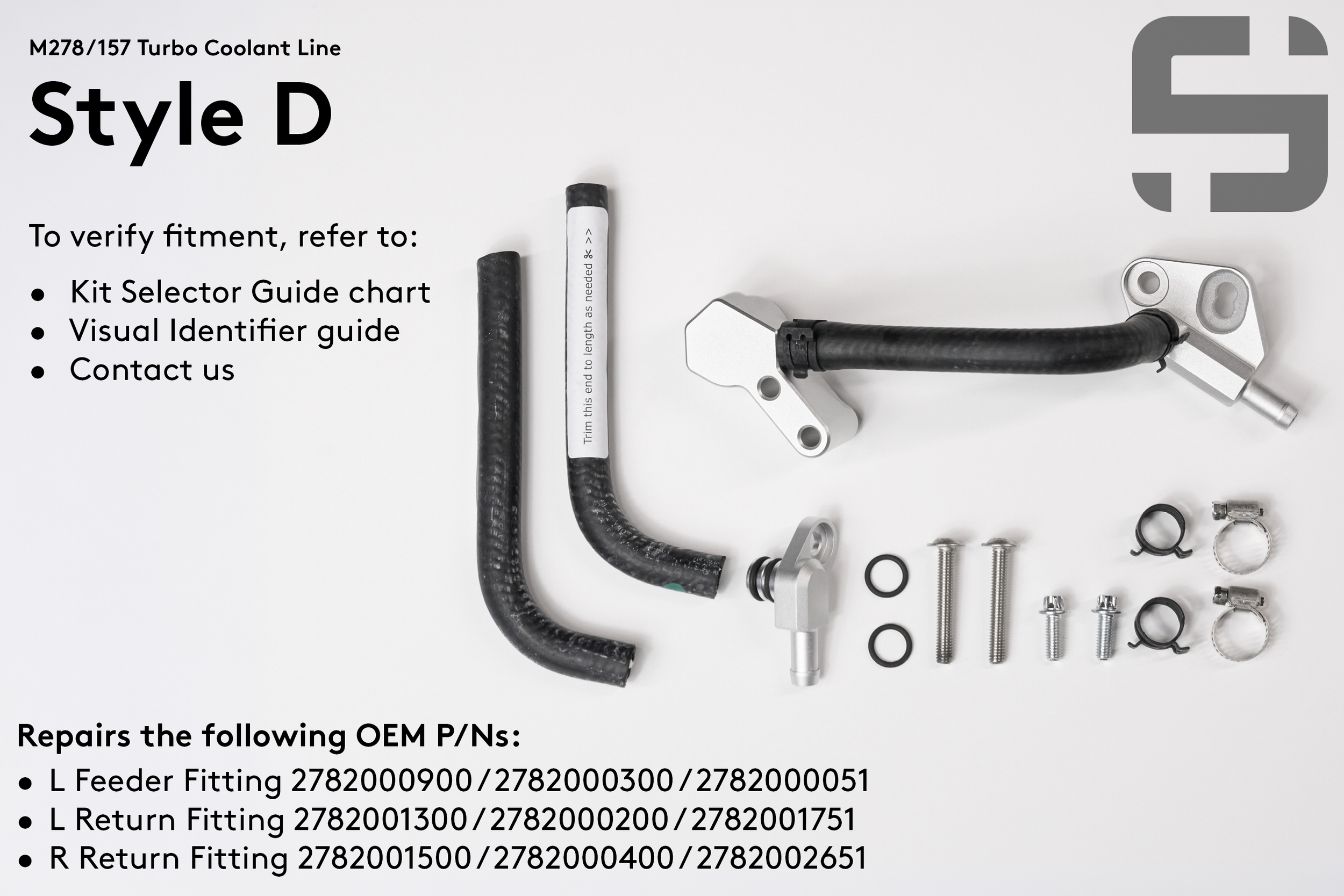 Replacing turbo coolant lines the conventional way requires removing the bolt holding the turbo line to the left turbo, which is notoriously difficult to remove due to lack of access. This kit allows you to bypass the need to remove this bolt, because it only replaces the section of hose known to fail.